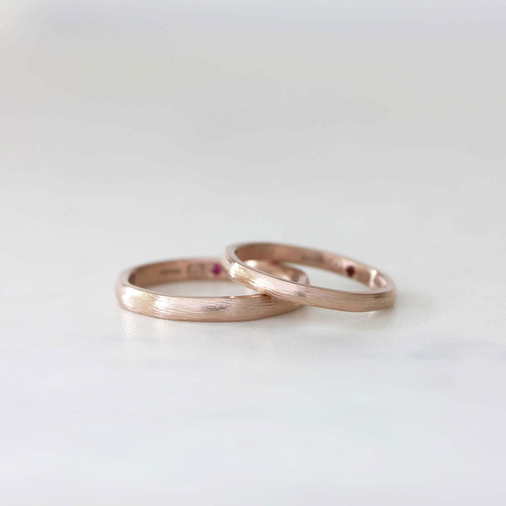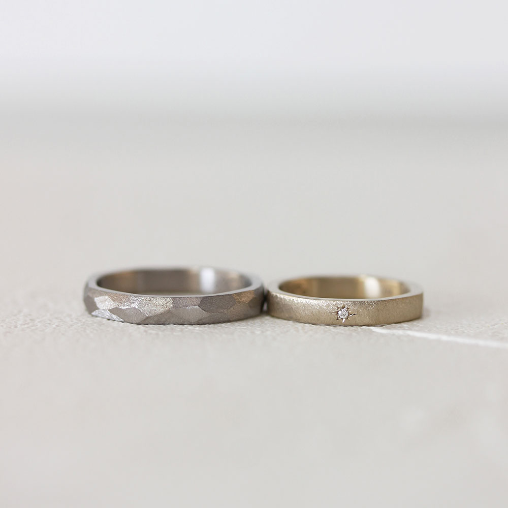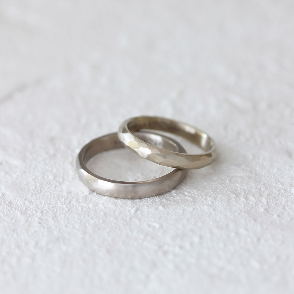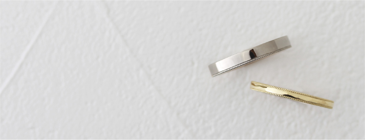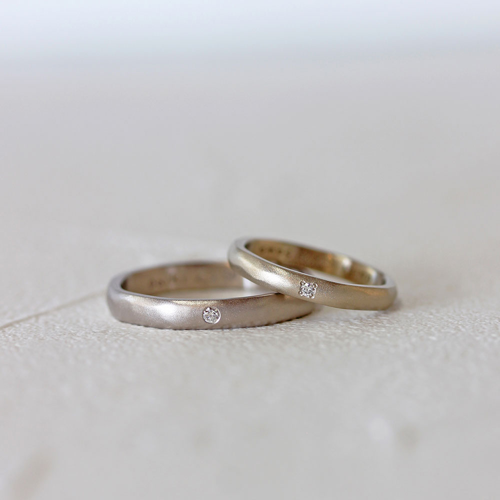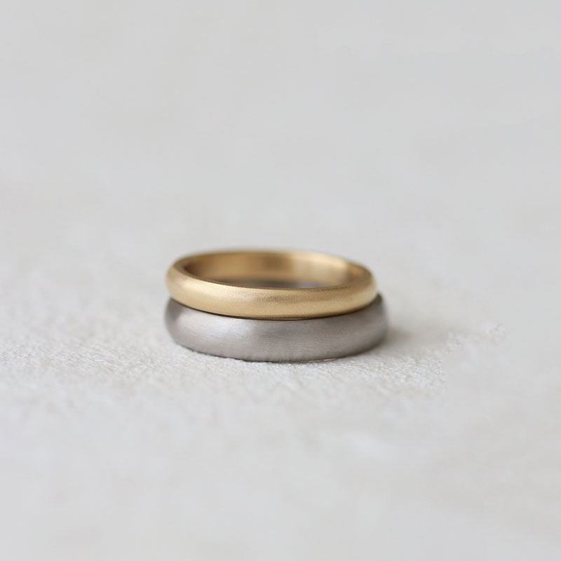 ベーシックな中でも地金の色や形、仕上げなどを自由に選べるので、 おふたりの“ 好き “を組み合わせた指輪が完成します。