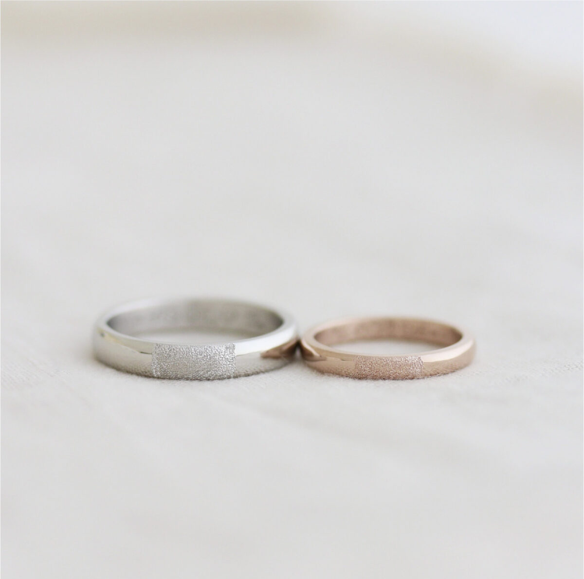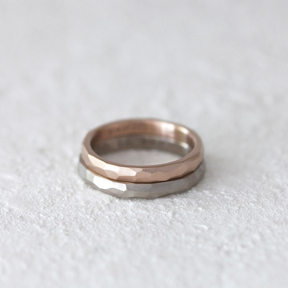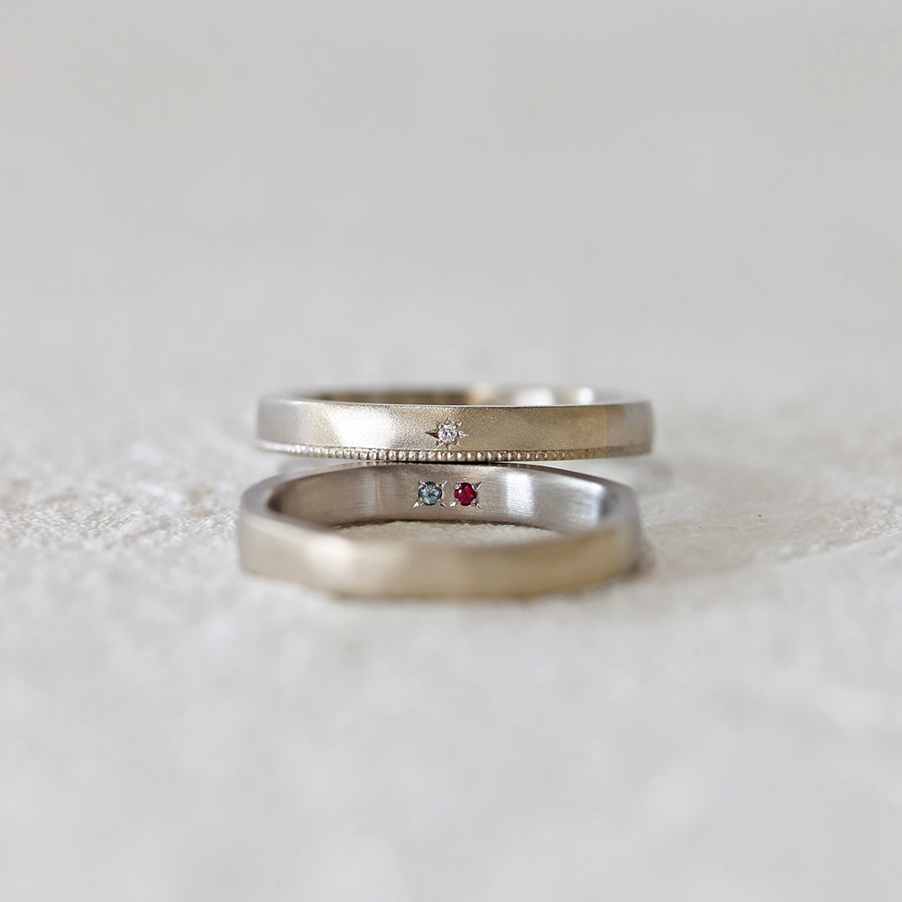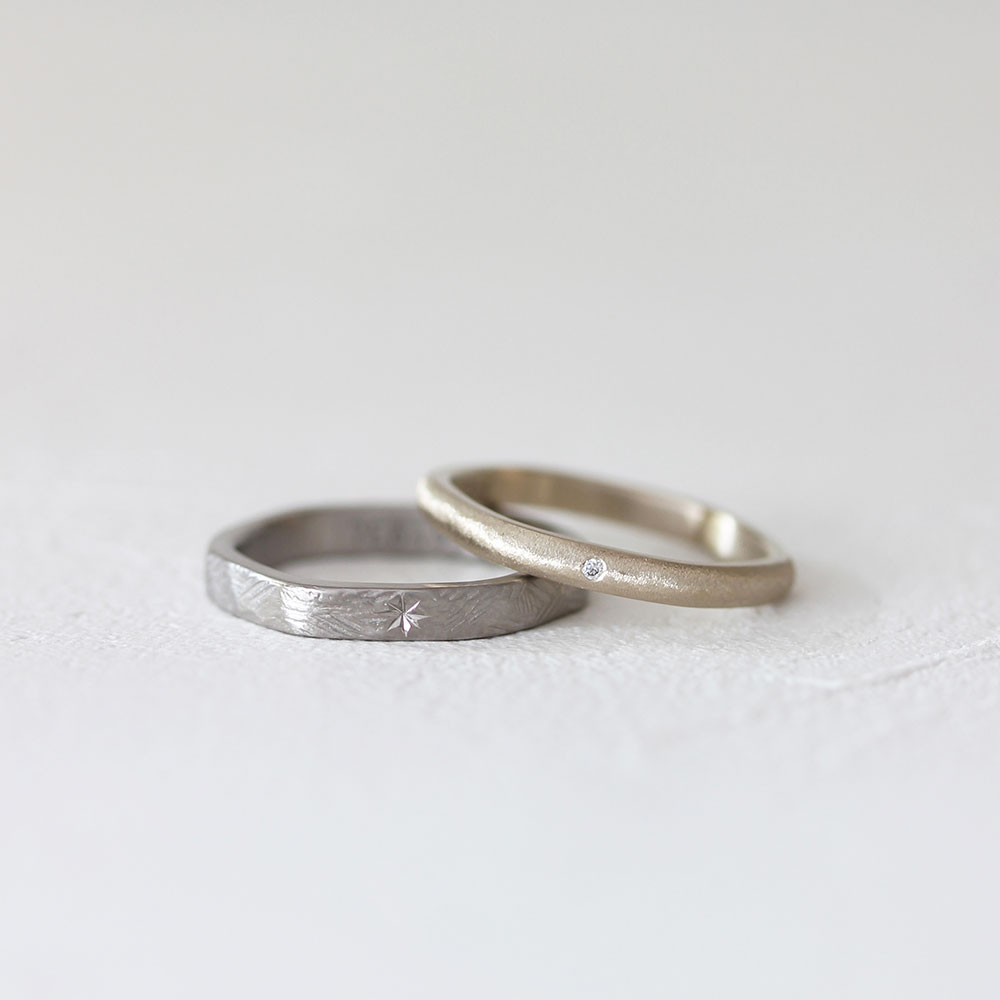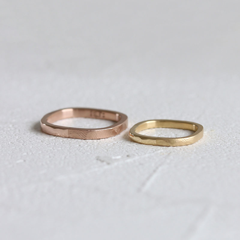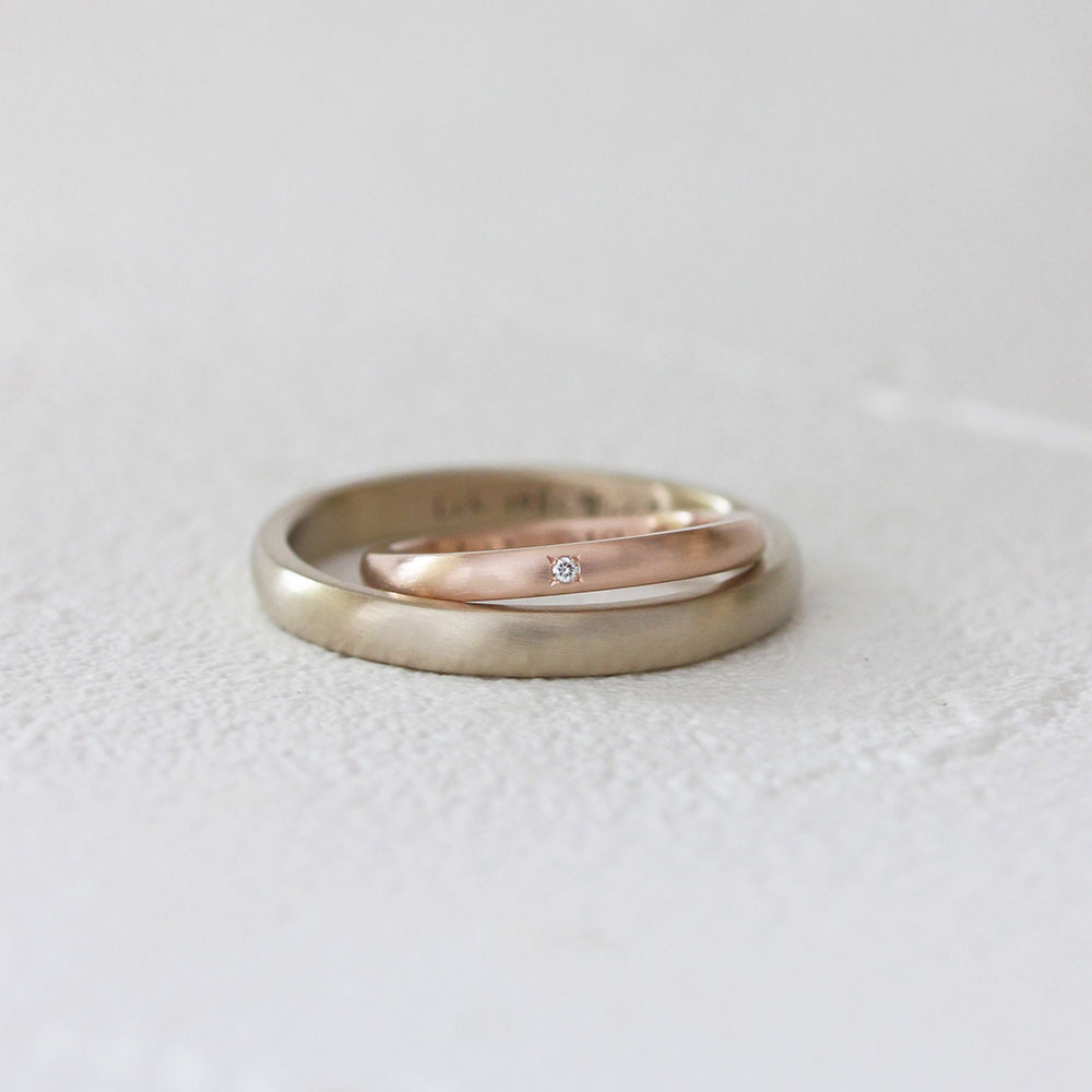 ベーシックな中でも地金の色や形、仕上げなどを自由に選べるので、 おふたりの“ 好き “を組み合わせた指輪が完成します。