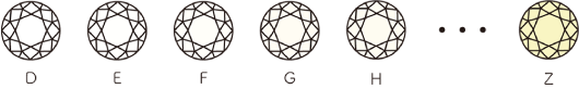 ダイヤモンド地色の違いを表すのが、カラー評価です。
